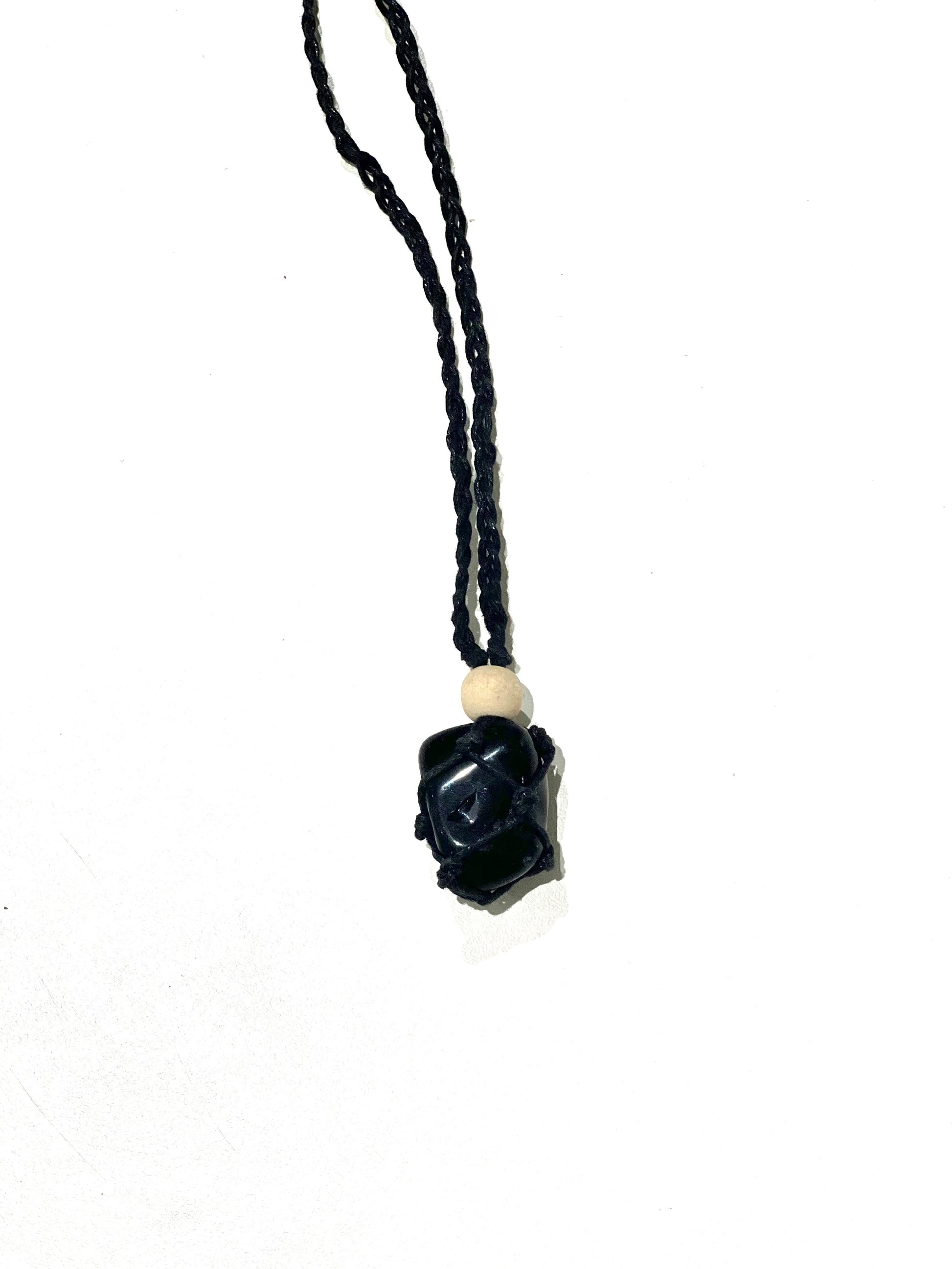 Beautiful handmade macrame crystal necklace with Black Obsidian with cream, tan or black cord. All jewellery is made by me :)