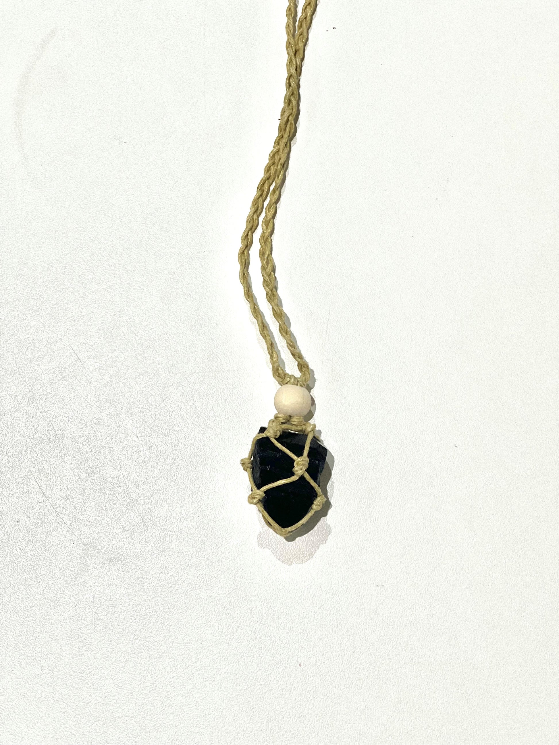 Beautiful handmade macrame crystal necklace with Black Tourmaline with cream, tan or black cord. All jewellery is made by me :)