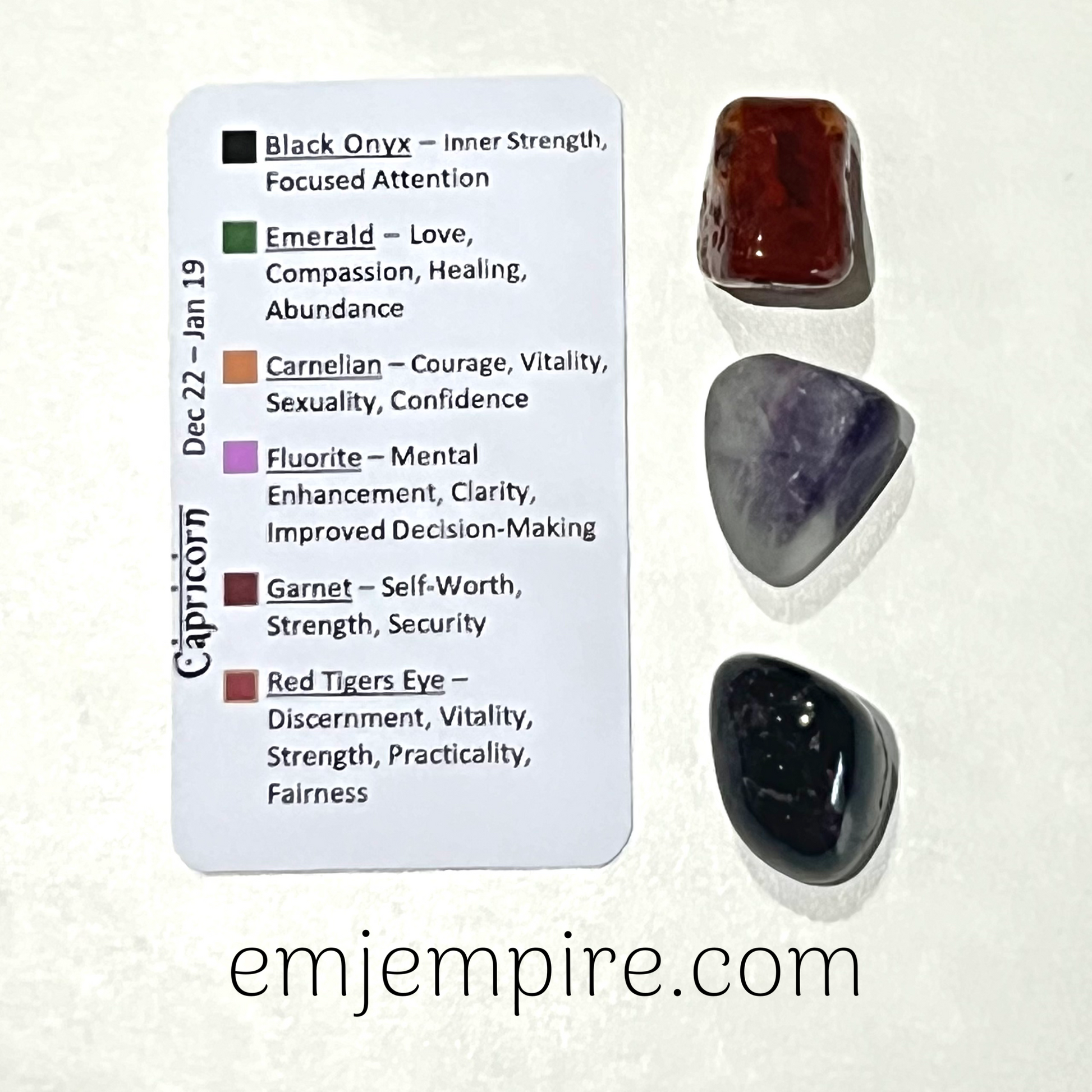 You can carry them with you to enhance the connection to your sun sign or assist with the current phase of the moon, Either way they will make a perfect as a birthday gift for your Capricorn friend or loved ones.