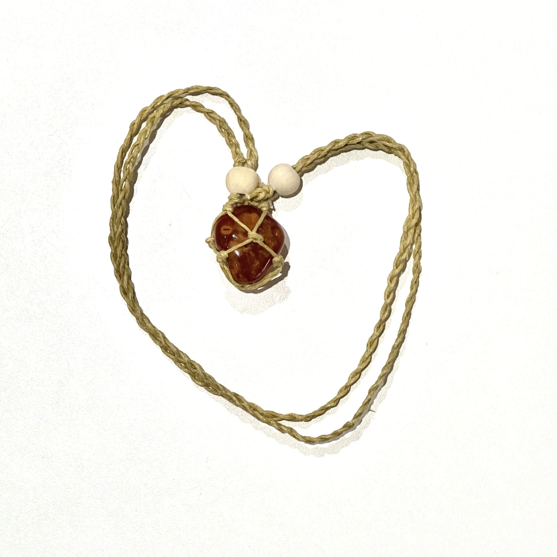 Beautiful handmade macrame crystal necklace with Carnelian with cream, tan or black cord. All jewellery is made by me :)