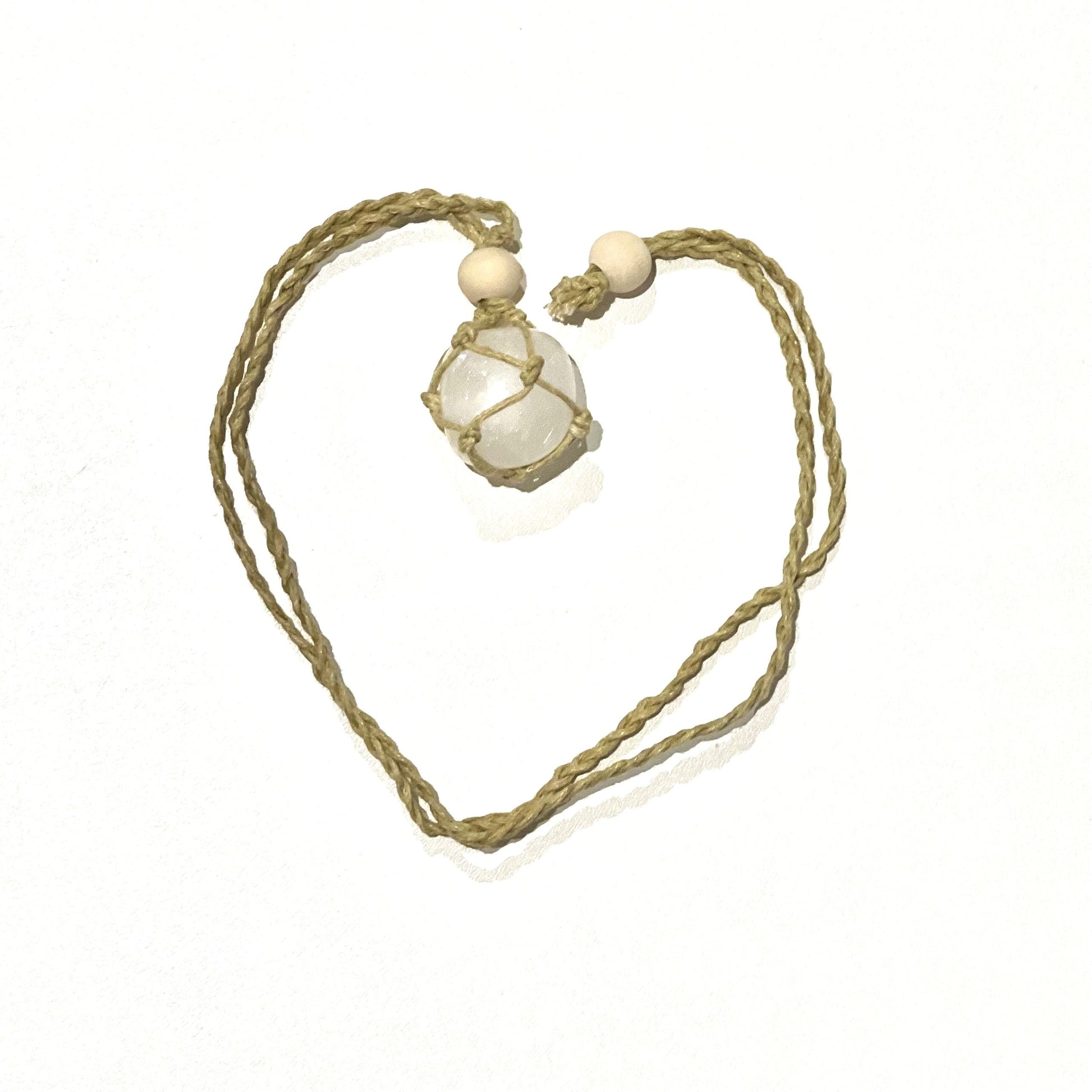Beautiful handmade macrame crystal necklace with Clear Quartz with cream, tan or black cord. All jewellery is made by me :)