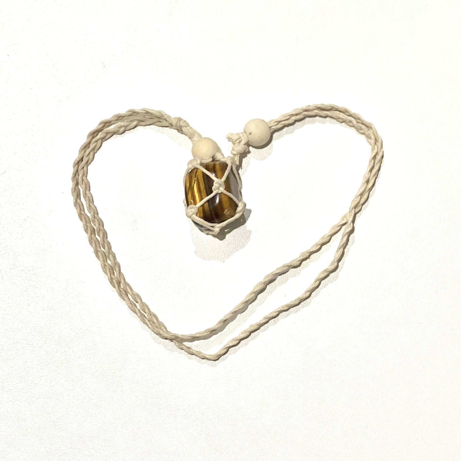 Beautiful handmade macrame crystal necklace with Golden Tigers Eye with cream, tan or black cord. All jewellery is made by me :)