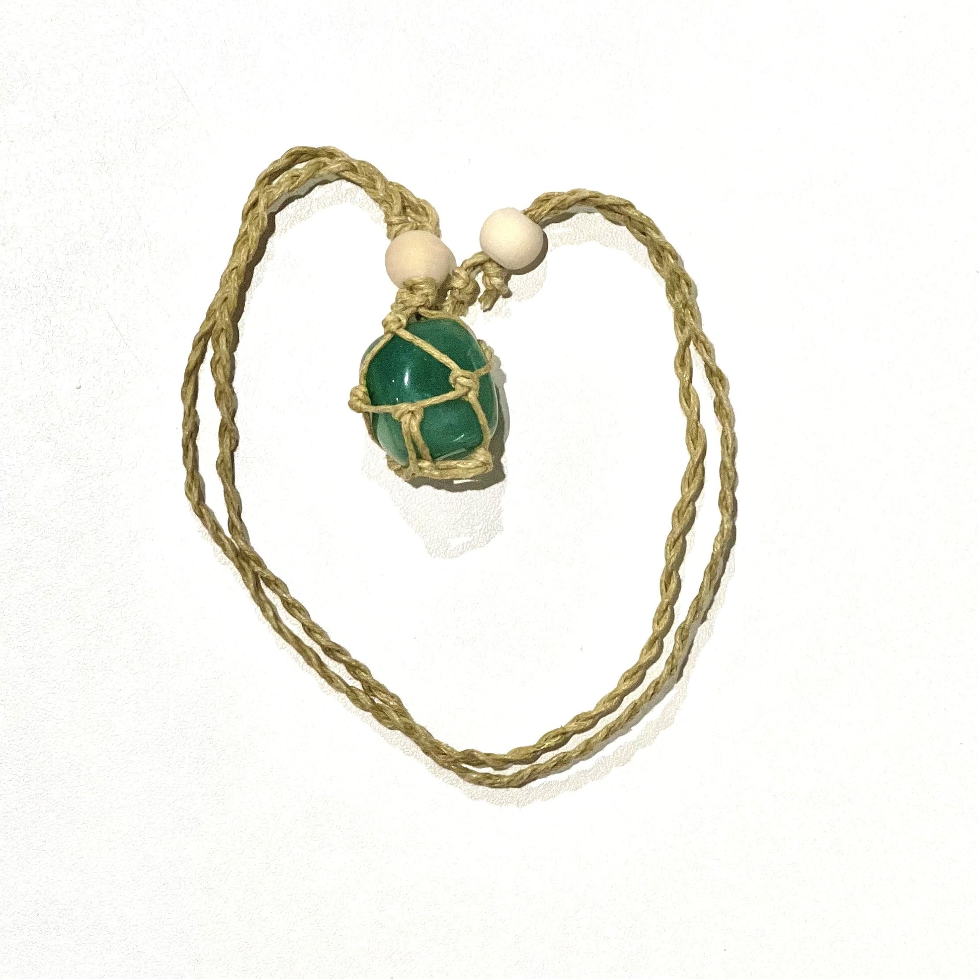 Beautiful handmade macrame crystal necklace with Green Aventurine with cream, tan or black cord. All jewellery is made by me :)