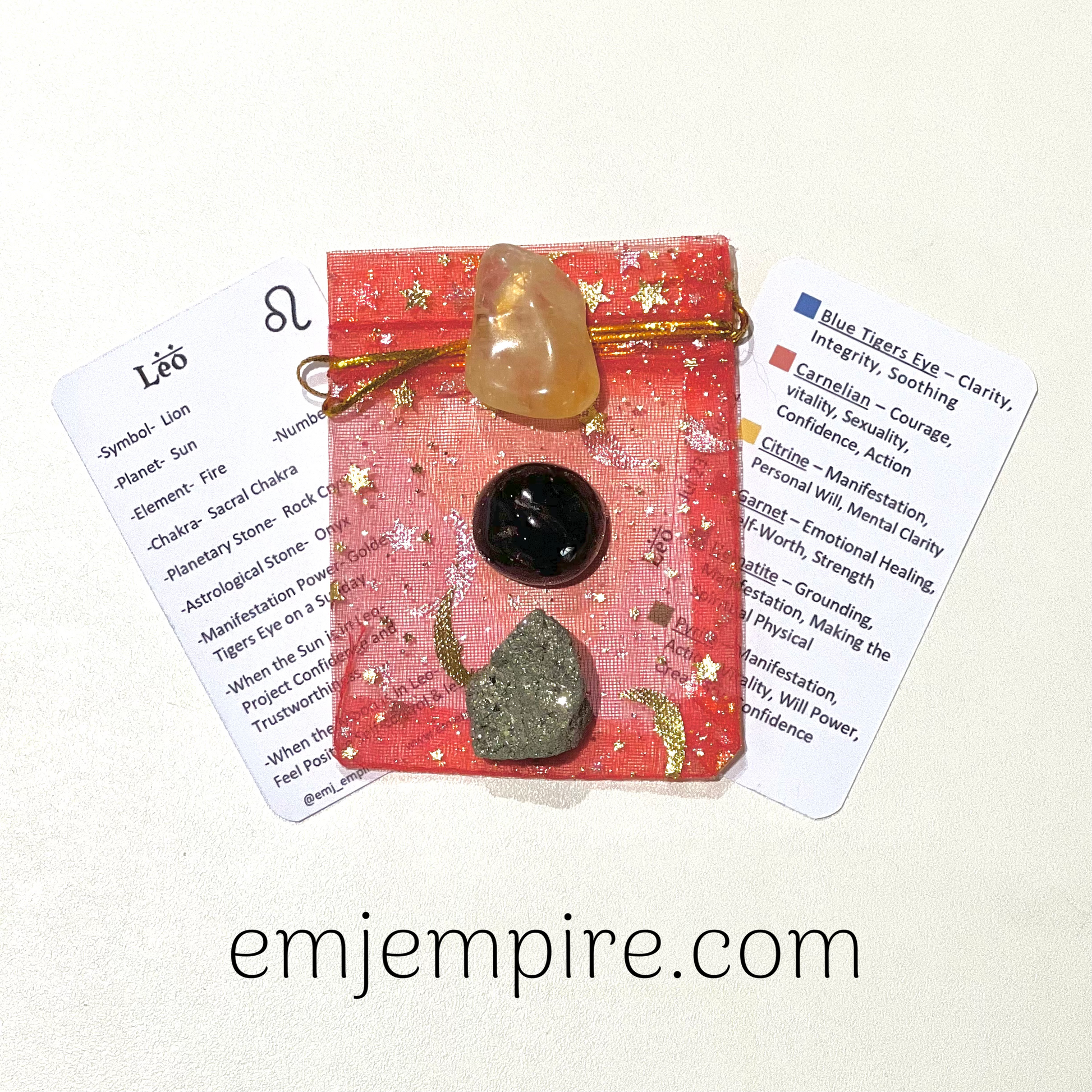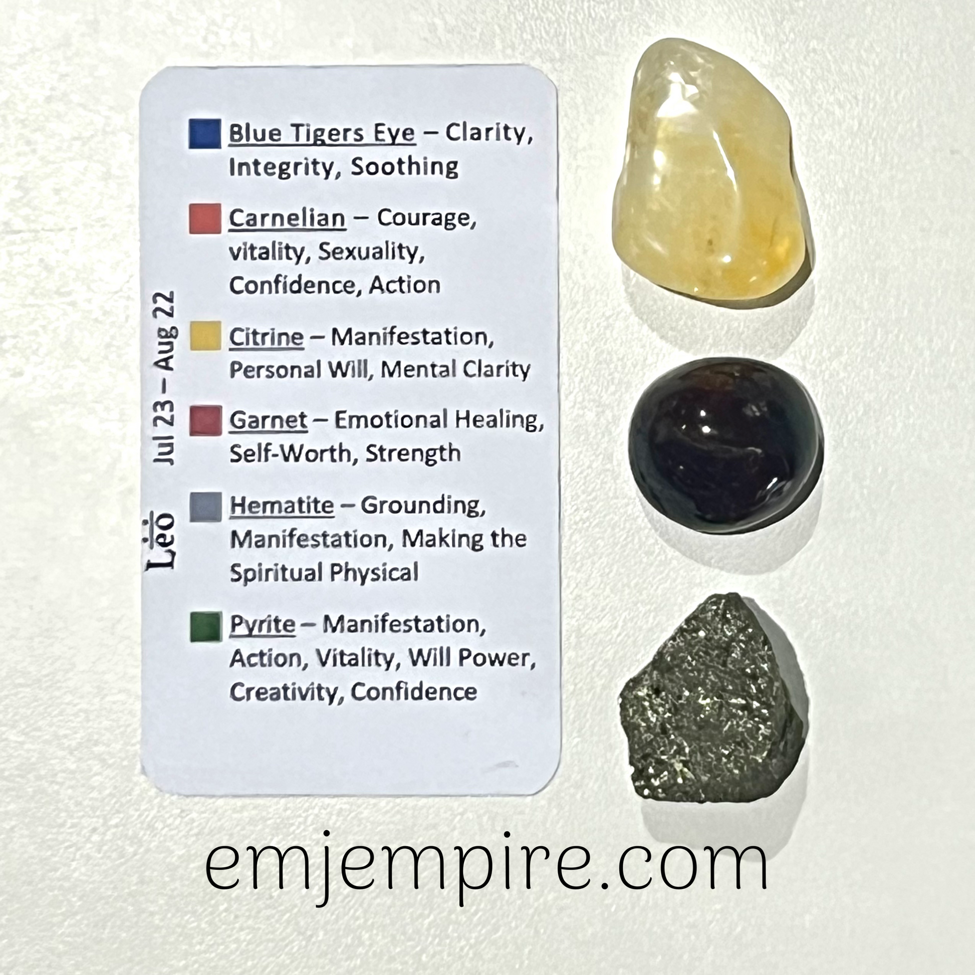 This Leo crystal kit is curated to complement Leo zodiac or Leo rising energy - strengthening their positive traits and balancing negative ones.