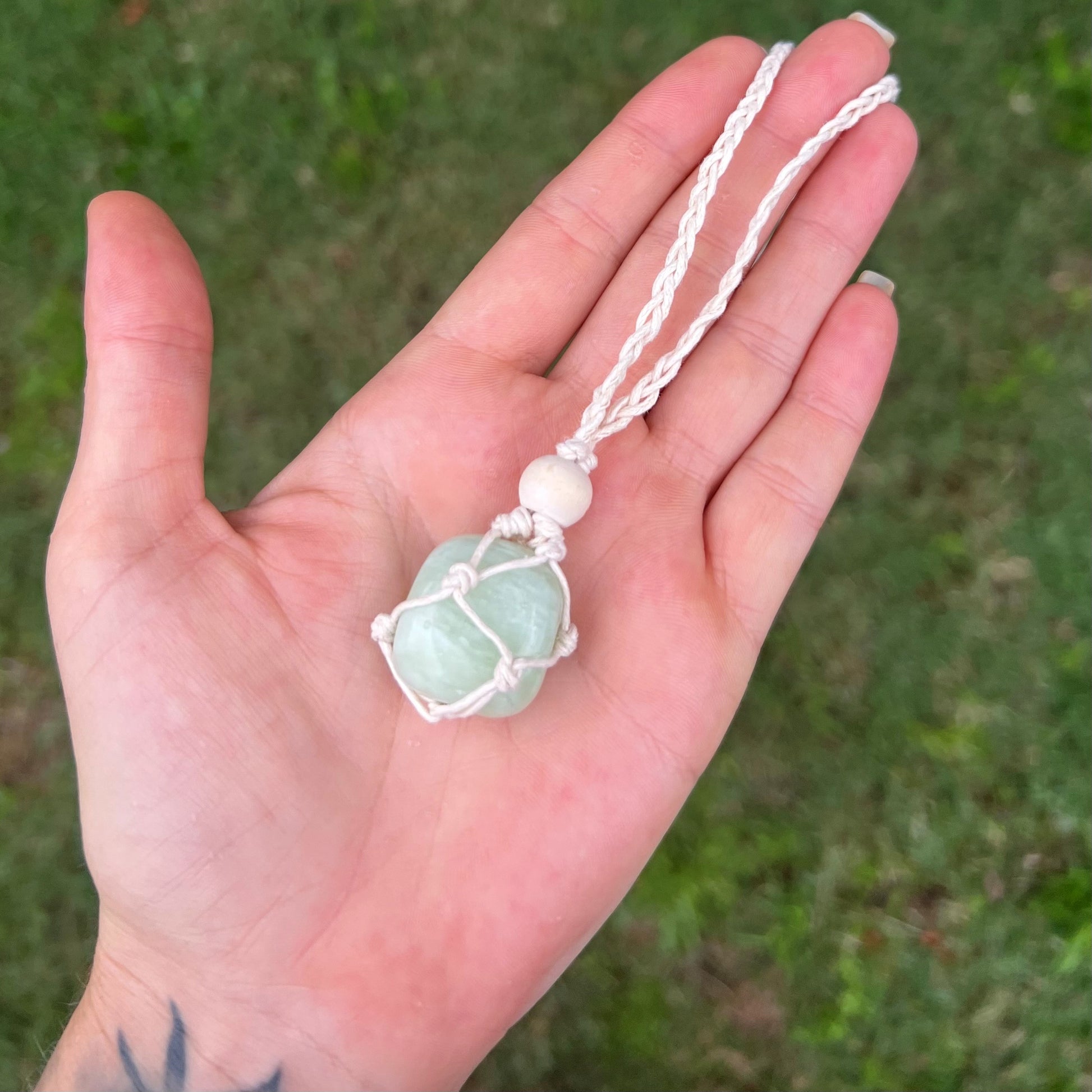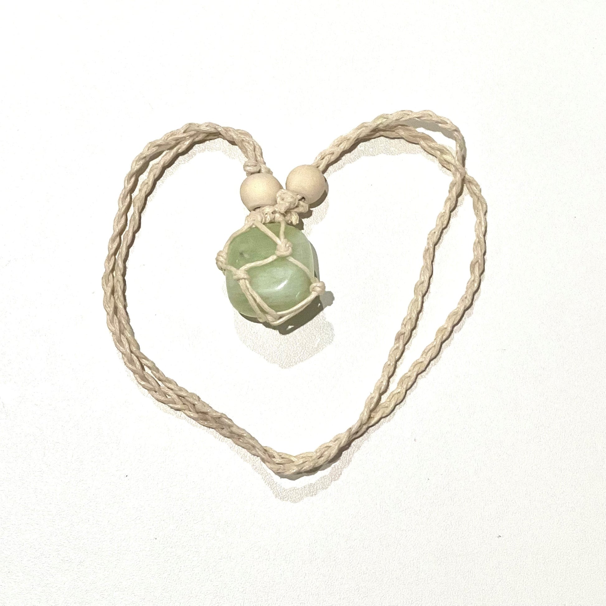 Beautiful handmade macrame crystal necklace with New Jade with cream, tan or black cord. All jewellery is made by me :)