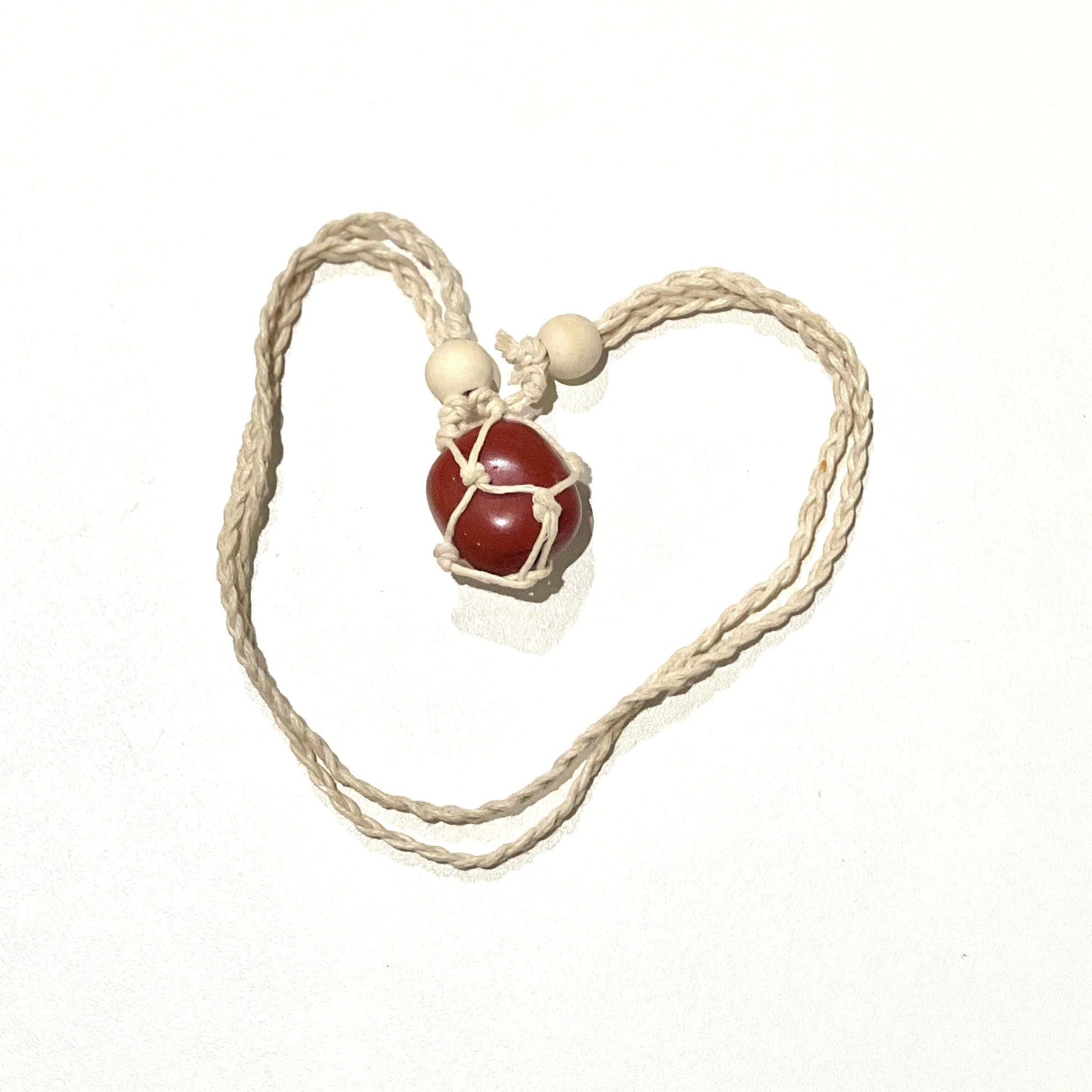 Beautiful handmade macrame crystal necklace with Red Jasper with cream, tan or black cord. All jewellery is made by me :)