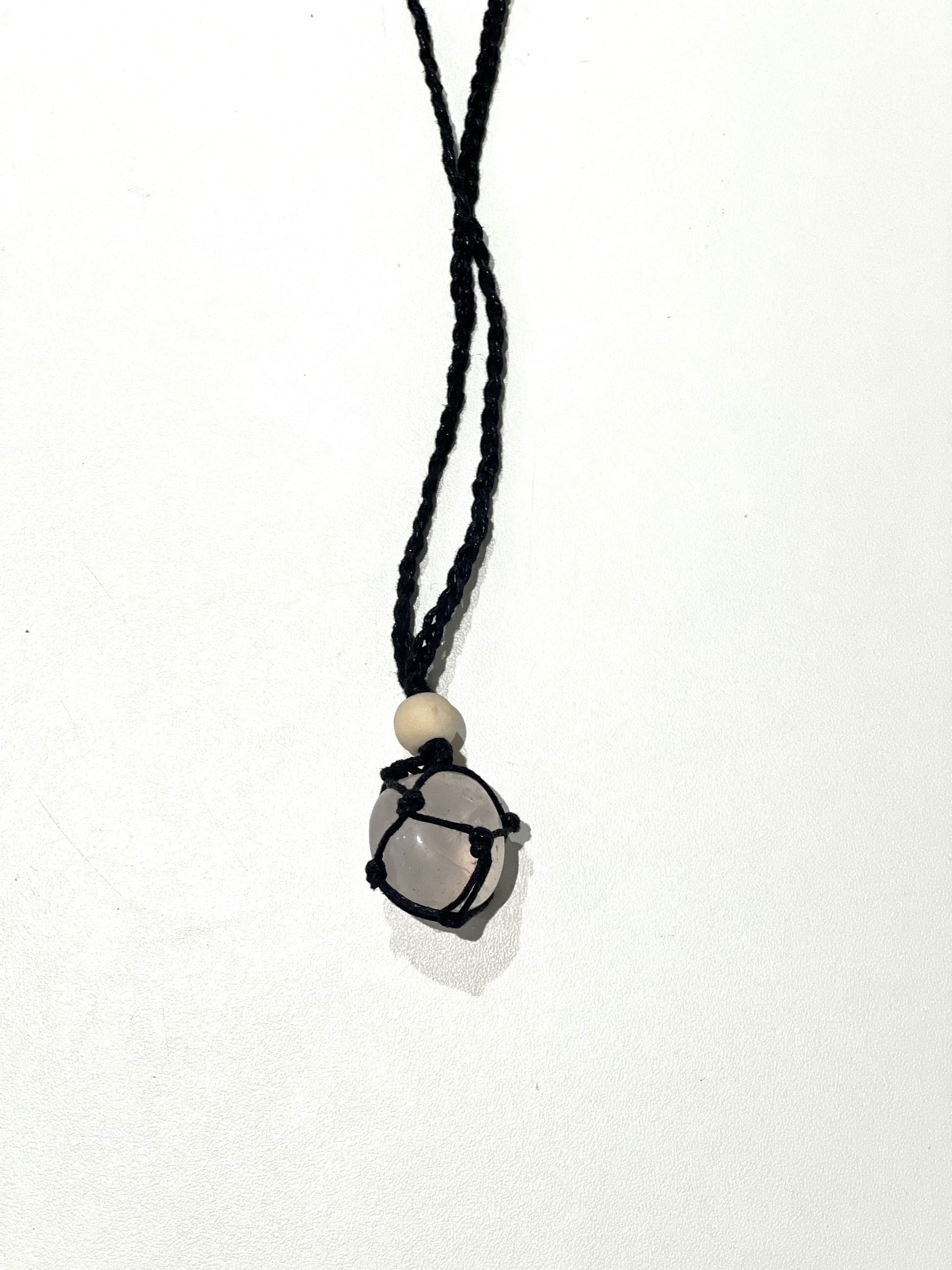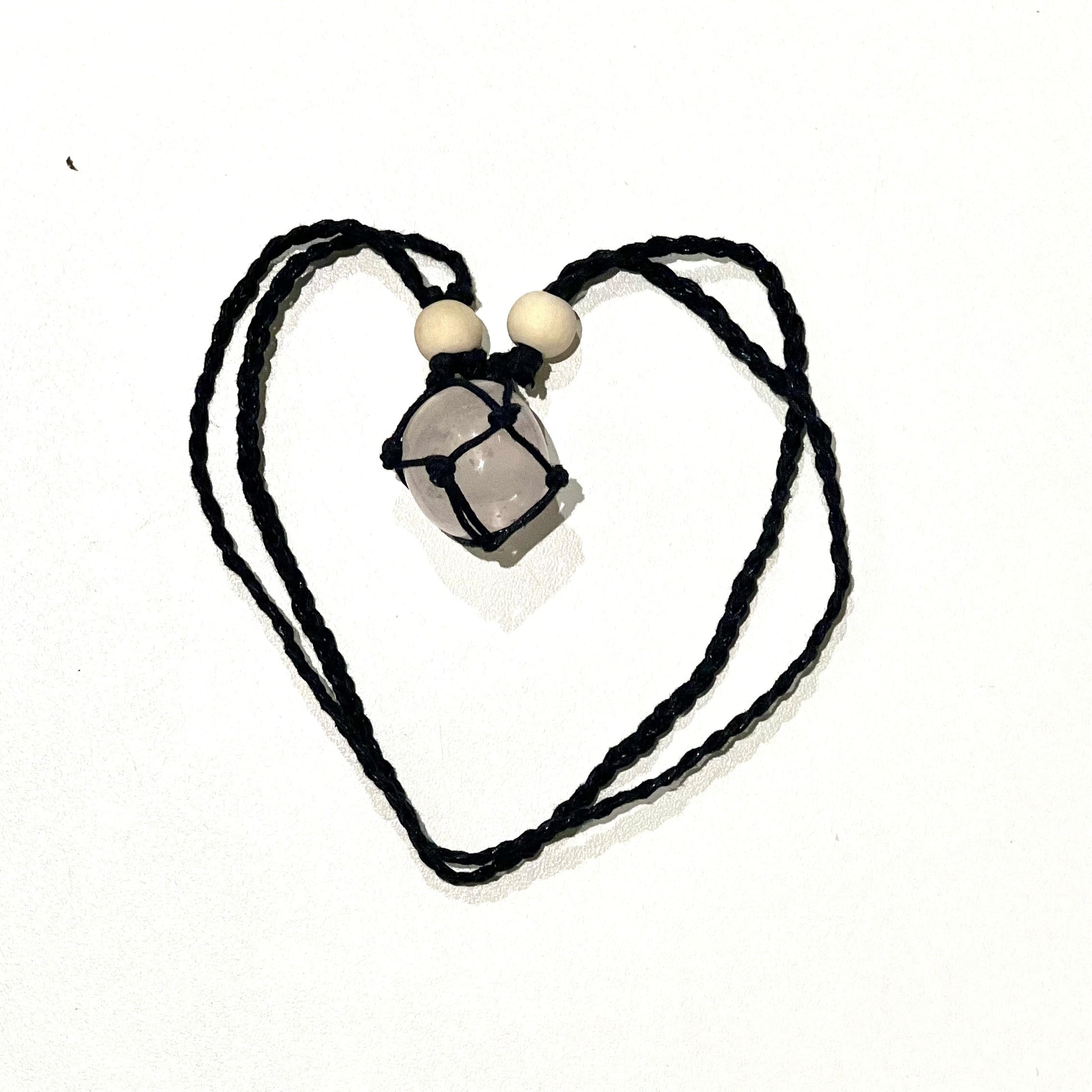 Beautiful handmade macrame crystal necklace with Rose Quartz with cream, tan or black cord. All jewellery is made by me :)