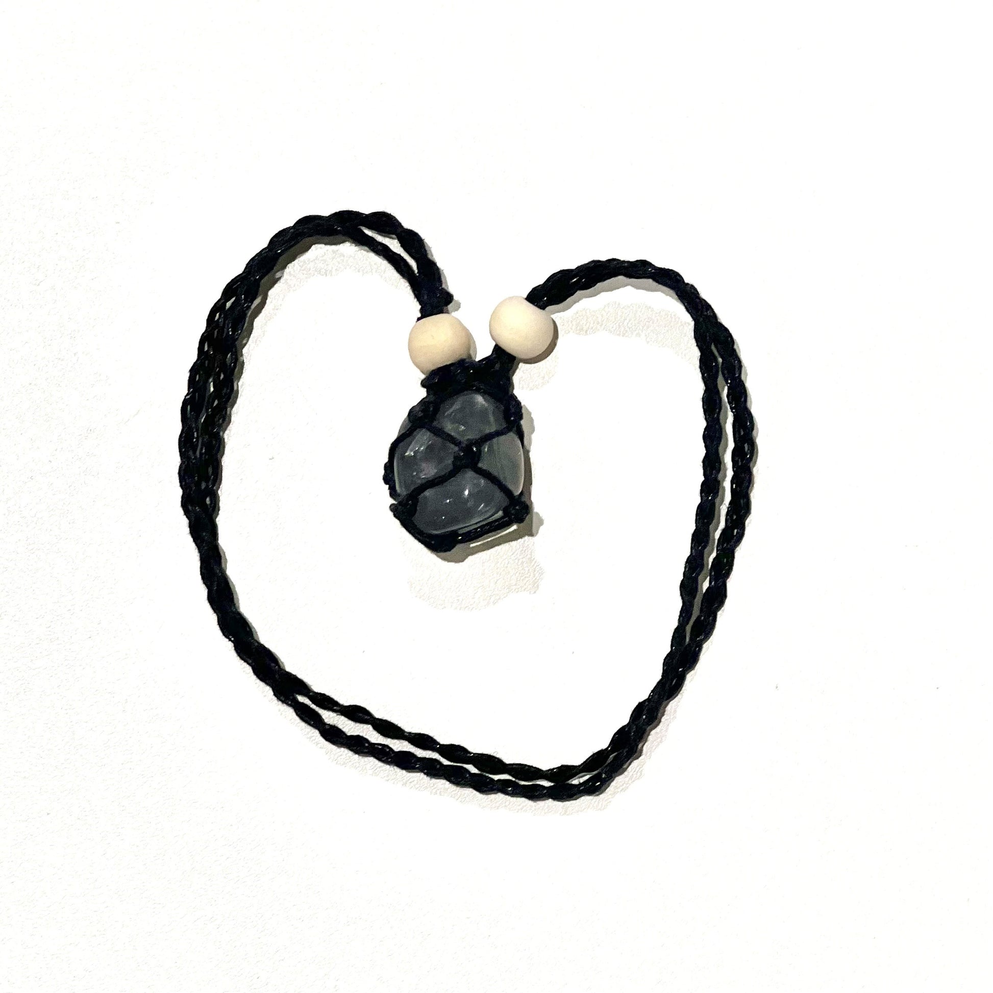 Beautiful handmade macrame crystal necklace with Smoky Quartz with cream, tan or black cord. All jewellery is made by me :)